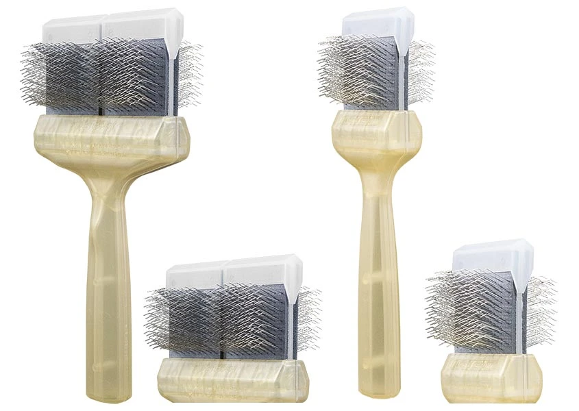 Soft Bürste für kurzes, dichtes Unterfell und langes, seidiges Fell ohne Unterwolle. Der super softe Coat Grabber Gold ist die perfekte Finish-Bürste für Langhaar.
