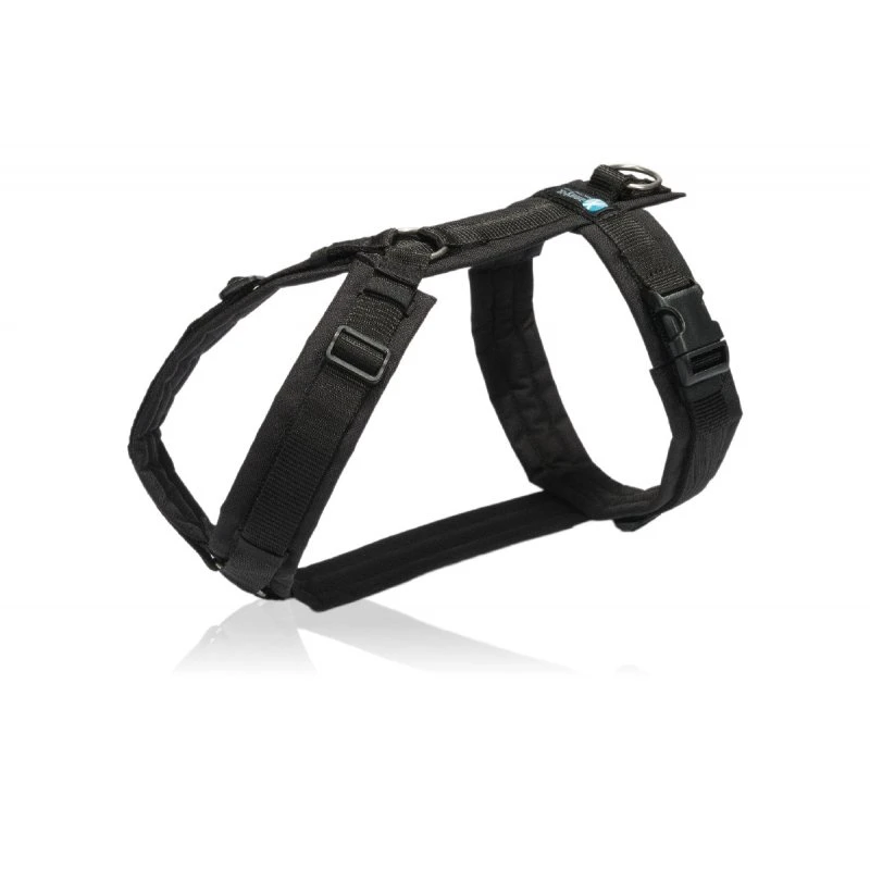 Die umlaufenden Gurte im Brustbereich bilden dank des langen Unterbruststegs einen bewegungsfreundlichen Abstand zu den Vorderbeinen, so dass die Achseln geschont werden. Das Gurtband ist in der kleinsten Einstellung komplett mit luftdurchlässigen Schaumstoff gepolstert und dieser wiederum ist mit Cordura (hoch abriebfestes Material) eingefasst.