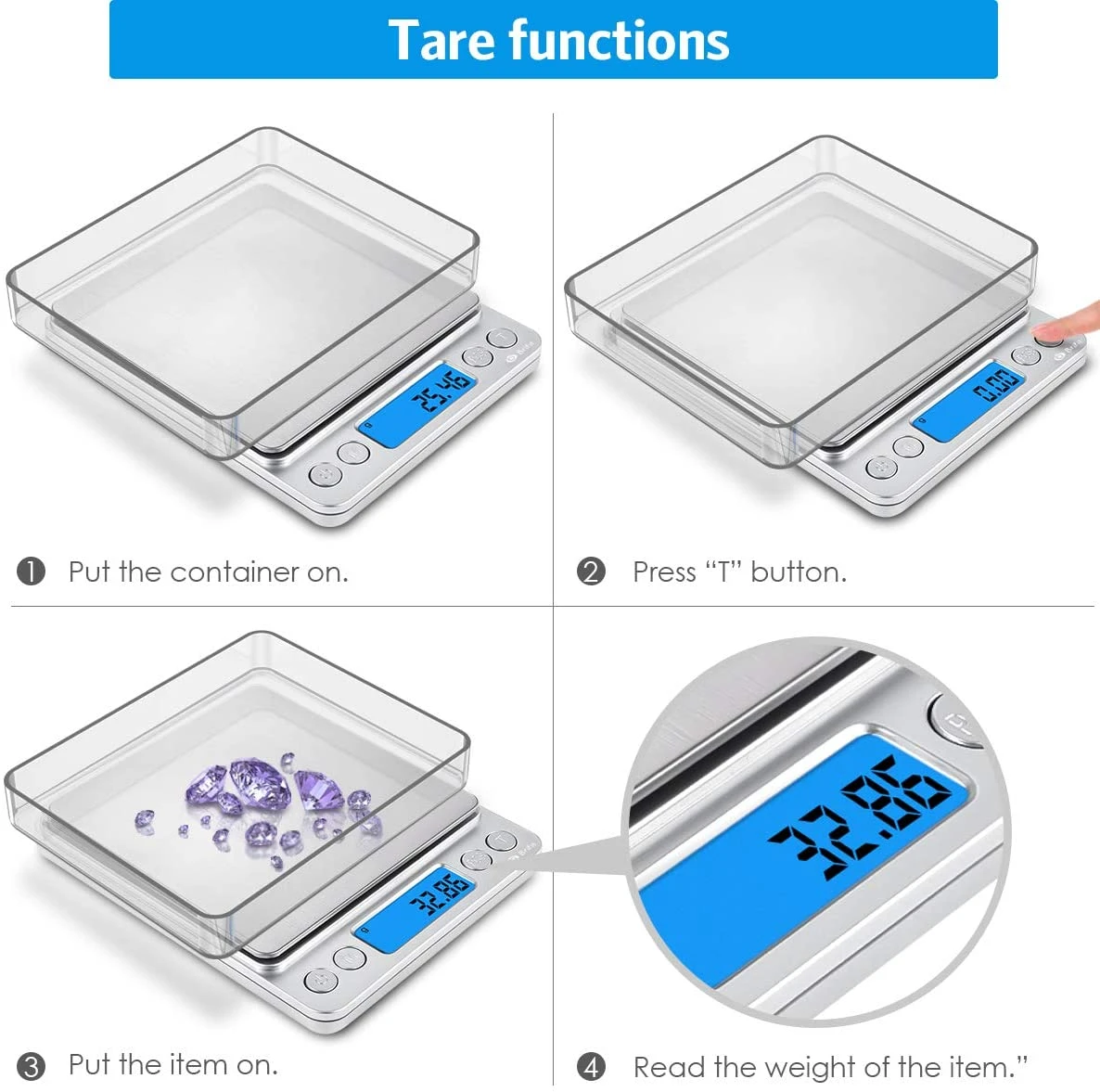 - kann im Bereich von 0,05 g bis 500 g wiegen