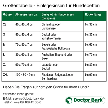 Das Einlegekissen für Hundebetten ist passgenau für alle Doctor Bark Hundebetten erhältlich.