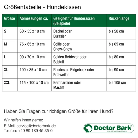 Die Füllmenge je cm³ ist auf aktuellen wissenschaftlichen Erkenntnissen berechnet und variiert je nach Kissengröße. Dies macht das Doctor Bark Hundekissen u.a. zu einer orthopädischen Hundeliegefläche.