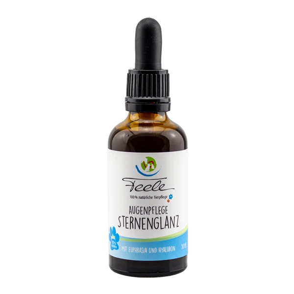 Feele „Sternenglanz“ unterstützt die Reinigung und Pflege der Augen von Hund, Katze und Pferd auf sanfte und schonende Weise. Sie pflegt rein mit natürlichen Inhaltsstoffen wie dem Augentrost.