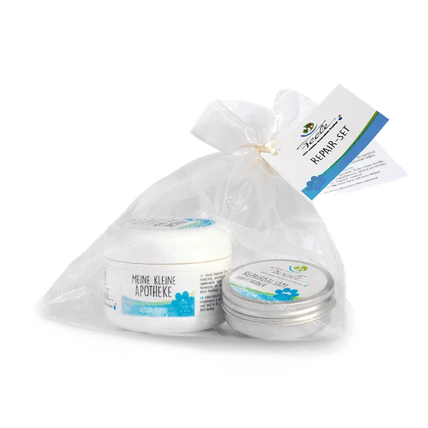 „Meine kleine Apotheke“ und der Repairbalsam „Hautzauber“ können zusammen, aber auch einzeln nachhaltig zur Regeneration verletzter bzw. gereizter Haut beitragen.
