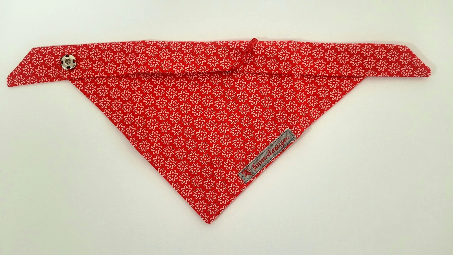 In diesem niedlichen Halstuch in freundlichem rot mit kleinen weißen Blümchen kann niemand Deinem Hund widerstehen.