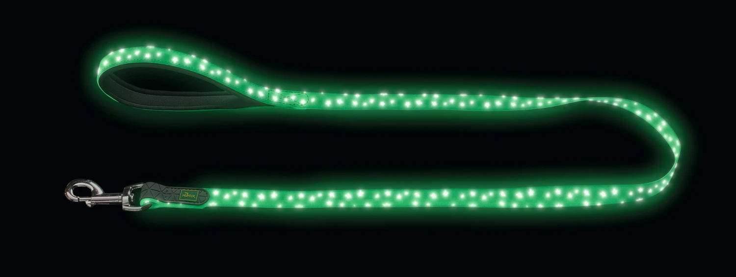 Die Führleine CONVENIENCE REFLECT GLOW ist für den Einsatz bei sportlichen Aktivitäten und in der Freizeit ideal geeignet. Bei Dämmerung und Dunkelheit offenbart sie ihr volles Potenzial, denn das innovative Material fluoresziert für einen waschechten Glow-in-the-Dark-Effekt. Und damit nicht genug! Werden Hund und Halter von einer Lichtquelle wie z.B. von PKW-Scheinwerfern oder der Kopflampe eines anderen Hund-Mensch-Teams angestrahlt, so reflektiert der Aufdruck der Leine und sorgt für optimale Sichtbarkeit auch in der Dämmerung oder bei witterungsbedingt schwierigen Sichtverhältnissen. Das zur Herstellung der Führleine verwendete Material zeichnet sich durch Robustheit und Leichtigkeit aus und ist reiß- und wasserfest zugleich. Sollte der Hund einmal unerwartet zum Sprung ansetzen weil ein Wildtier seine Aufmerksamkeit erregt hat, muss »das andere Ende der Leine« sich keine Sorgen machen, denn CONVENIENCE REFLECT GLOW ist wetterunabhängig griffig und dank der neoprengepolsterten Handschlaufe auch besonders hautschonend weich. Ein Topseller für anspruchsvolle Hundehalter, die auf Sicherheit dank Sichtbarkeit großen Wert legen und am liebsten mit »leichtem Gepäck« Gassi gehen.