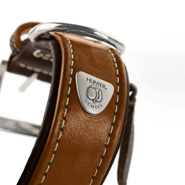 Ein echtes Ausnahmetalent bildet das Leder unseres Halsbandes TARA. Seine Ursprünge liegen in Russland. Um in den kalten und nassen Gebieten trockene Füße zu behalten, benötigte vor allem das Militär außerordentlich strapazierfähige und wasserabweisende Stiefel. Zu diesem Zweck wurde Rindsleder mit Weidenrinde und Birkenteeröl gegerbt und gefettet, was ihm eine besondere Stabilität sowie einen unverwechselbar markanten Geruch verlieh. »Zäh wie Juchtenleder« wurde zum geflügelten Wort und das Material selbst zu einem Synonym für Langlebigkeit und Belastbarkeit. Das Hundehalsband TARA basiert auf dieser alten Gerbtradition, die mit modernen, schonenden und rein pflanzlichen Mitteln wieder zum Leben erweckt wurde. Das Ergebnis ist ein schmutz- und wasserabweisendes Unikat, das trotz seiner Robustheit extrem geschmeidig anmutet. Kontrastreiche Ziernähte sowie der abnehmbare Schlüsselanhänger mit HUNTER Juchten-Logo vervollständigen den rustikalen Look dieses einmaligen Stücks.