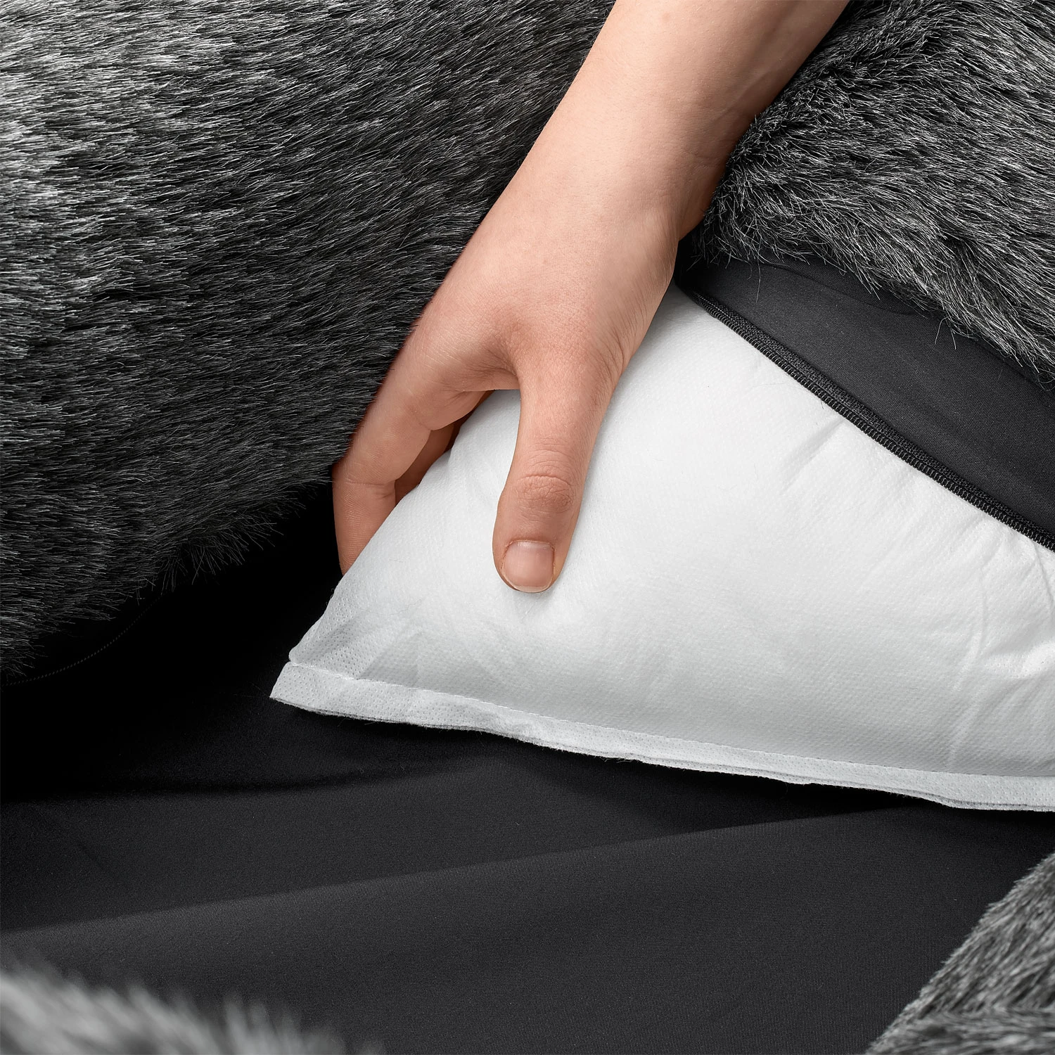 • wendbares Innenkissen mit Plüschbesatz