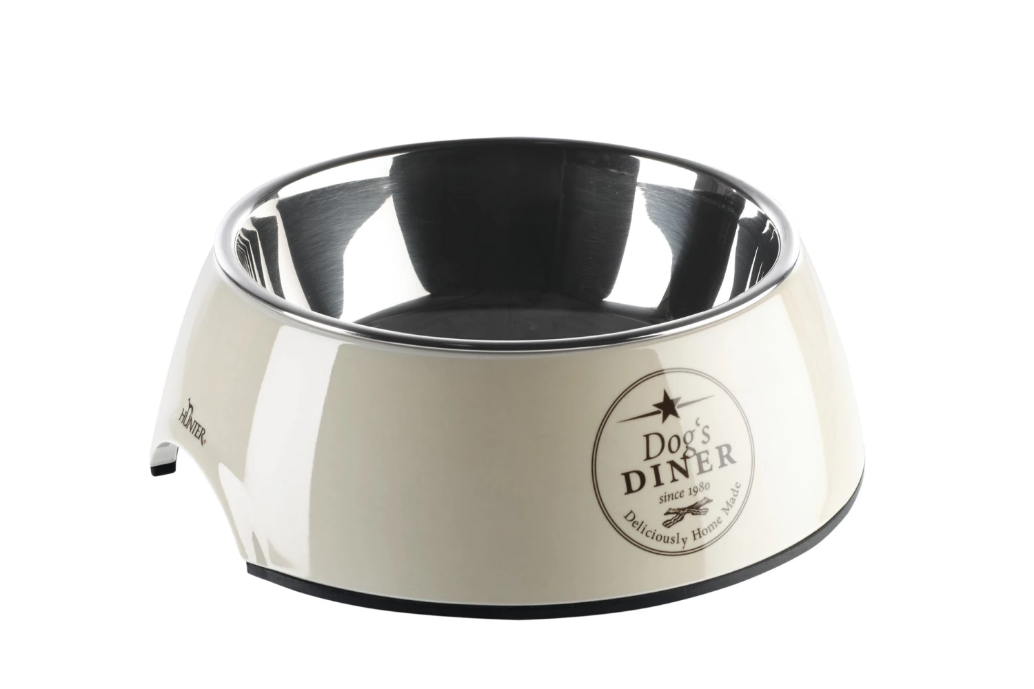 American Diner-Style mit dem Melamin-Napf CAMBRIDGE mit Vintage- Logodruck „Deliciously Home Made“. Der Napf aus Melamin ist nicht nur schick, er ist vor allem auch kratz- und stossfest sowie besonders pflegeleicht. Sehr praktisch ist der herausnehmbare Innennapf aus Edelstahl. Gummiaufsätze am Napfboden sorgen für einen sicheren Stand und verhindern ein Verrutschen des Napfes bei übermütigem Fress- oder Trinkverhalten. Zur Reinigung einfach auswischen oder mit Wasser und einem weichen Tuch oder Schwamm abwaschen.