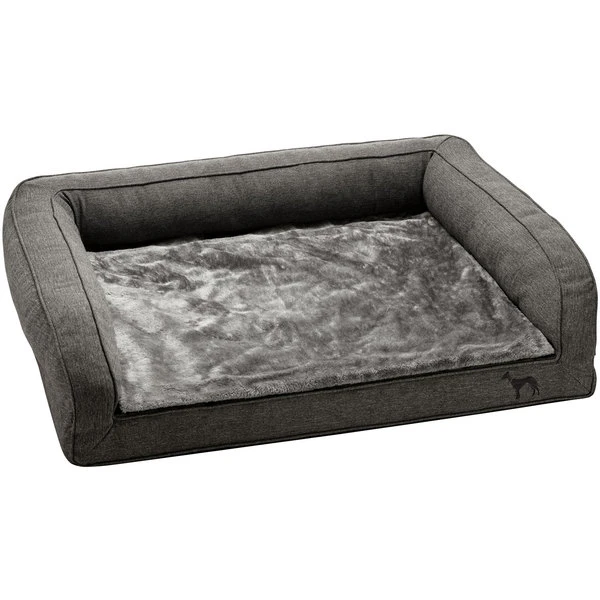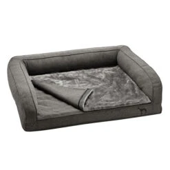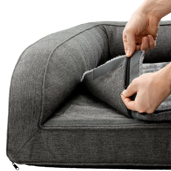 Das orthopädische Hundesofa LIVINGSTON wurde speziell für ältere oder kranke Hunde entwickelt. Tiere mit Gelenk- oder Rückenbeschwerden finden auf der Polsterung aus Memoryschaum den Komfort, den sie benötigen. Eine Einsteckmöglichkeit für saugfähige Einlagen nimmt kleinen Malheuren den Schrecken. Alte oder kranke Hunde brauchen besondere Unterstützung. Vielleicht haben sie Probleme beim Treppensteigen, oder sie können keine längeren Strecken laufen. Auf all das nehmen Sie als verantwortungsvoller Hundehalter natürlich Rücksicht. Mit dem orthopädischen Hundesofa LIVINGSTON schaffen Sie Ihrem Hund auch einen bequemen Liegeplatz. Ihr Hund kann bequem in bzw. auf sein Sofa steigen, weil die Vorderseite keinen Rand hat. Die Memoryschaumfüllung des orthopädischen Hundesofa LIVINGSTON stützt Rücken und Gelenke gut ab und ist sehr komfortabel. Auch auf kleine „Pfützen“ ist das orthopädische Hundesofa LIVINGSTON vorbereitet: Sie können saugfähige Einlagen in eine eigens dafür eingearbeitete Tasche einlegen. Der Bezug des Hundesofas ist bei 30 °C maschinenwaschbar. Für leichteres Waschen kann die Füllung vorher komplett entnommen werden.