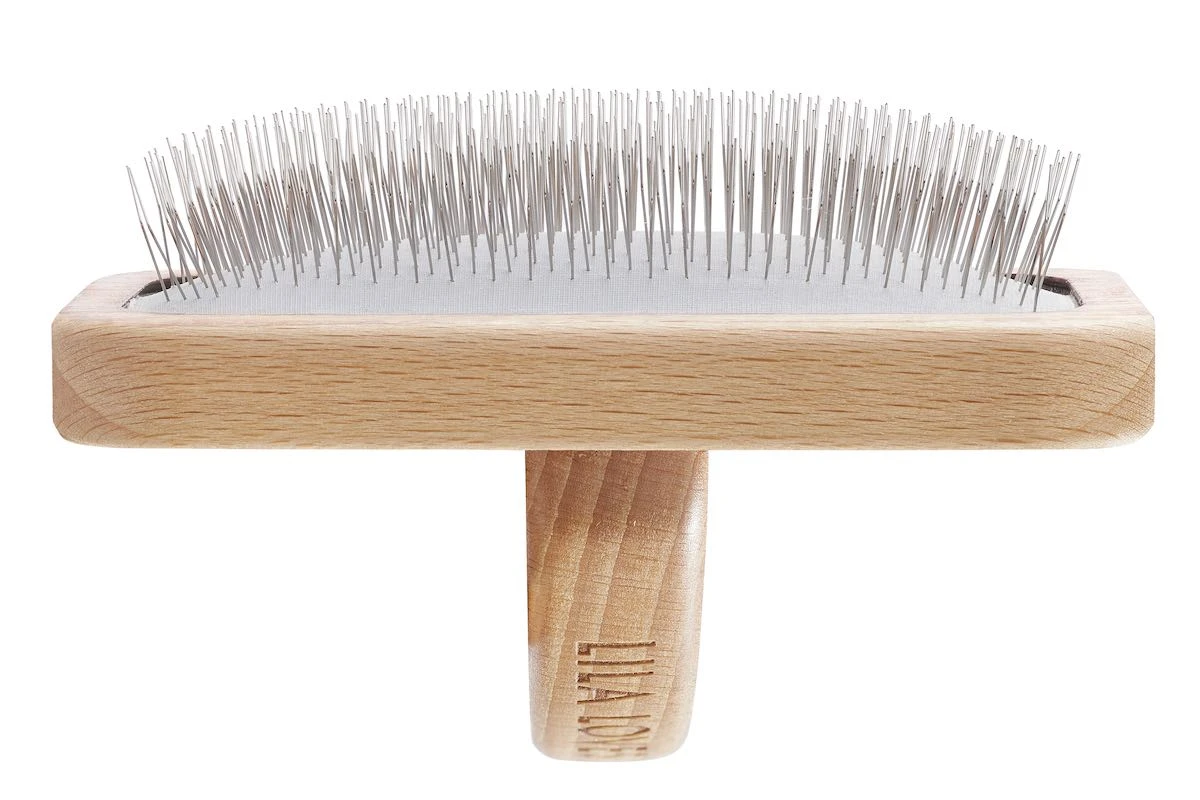 Unsere SLICKER BÜRSTE ist das perfekte Fellpflege-Utensil zum nötigen Ausbürsten von Unterfell. Vor allem für langhaarige Hunde und Vierbeinern mit Unterwolle geeignet . Dank ihrer feinen, abgerundeten Metallborsten werden lose Haare, Unterwolle und Verfilzungen ganz einfach aus dem Haarkleid entfernt – auch Verschmutzungen und abgestorbene Hautschüppchen beseitigt die Zupfbürste mühelos. Bei Hunden die zu Verfilzungen neigen, löst die SLICKER BÜRSTE die Knötchen im Fell effektiv.