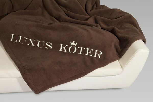 Luxuriös weiche Wellsoft Hundedecke in edlen Farben und mit „Luxus Köter“ Schriftzug bestickt