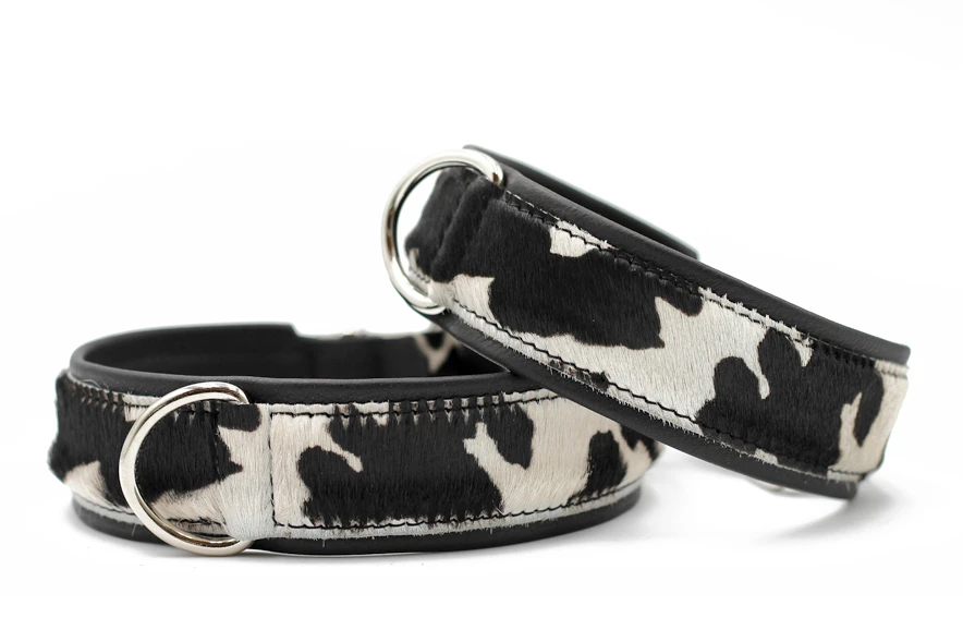 Die Oberseite ist aus Kuhfell, die Unterseite der Halsbänder aus dieser Serie sind aus umgebugtem Nappaleder ein glattes Leder, welches besonders geschmeidig ist und ihrem Hund dadurch hohen Tragekomfort liefert. um eine Ausdehnung zu verhindern und somit gleichzeitig für mehr Sicherheit zu sorgen, haben wir im Kern ein Nylon band eingearbeitet.