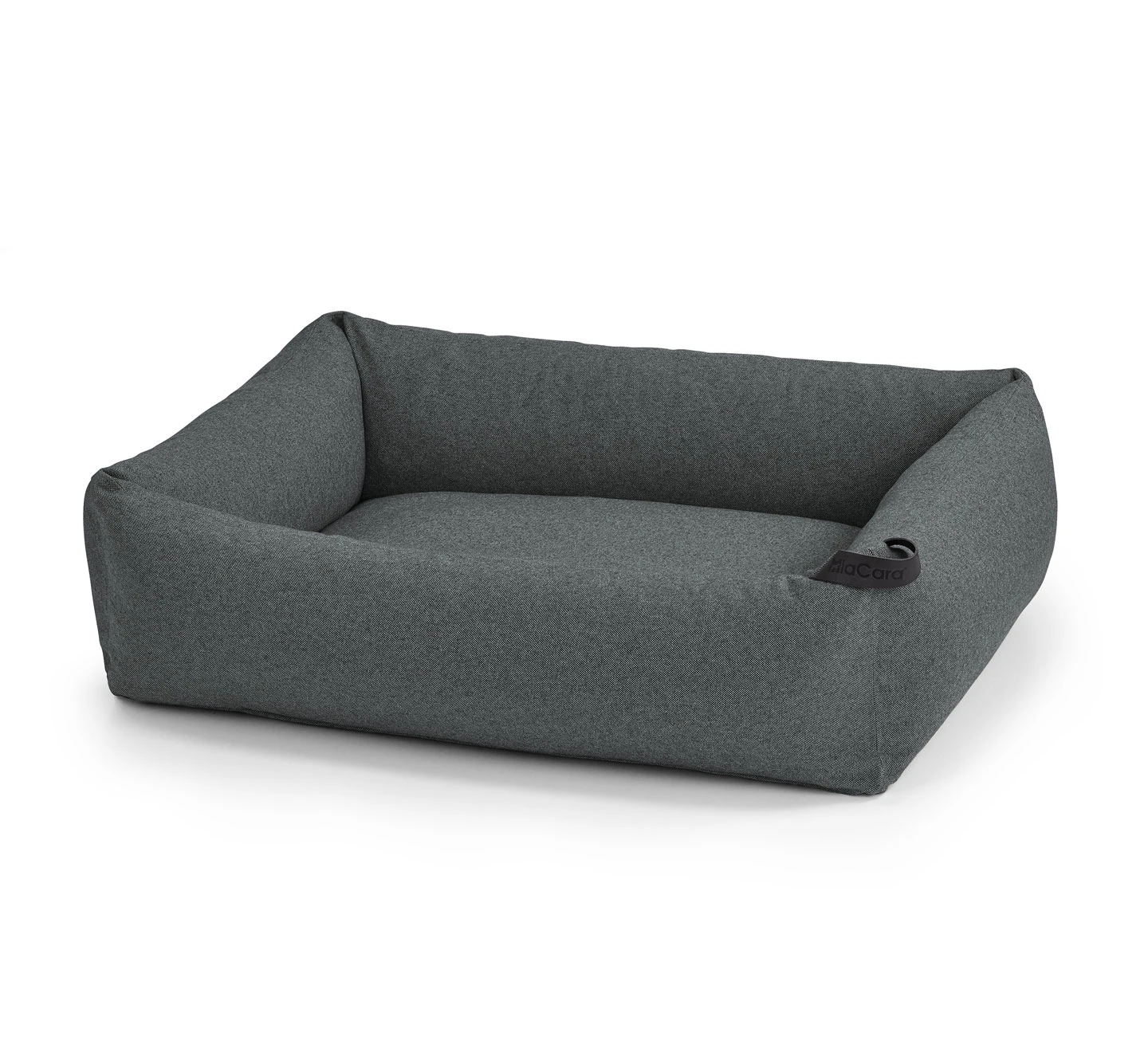 Das Stella Hundebett bildet die perfekte Grundlage für einen gesunden, erholsamen Schlaf. Die innovative MiaCara Box-Bett Konstruktion erhält durch den fein melierten Überzug in drei Farben einen modernen, zurückhaltenden Look. Ein weicher Ledergriff rundet das Design ab.