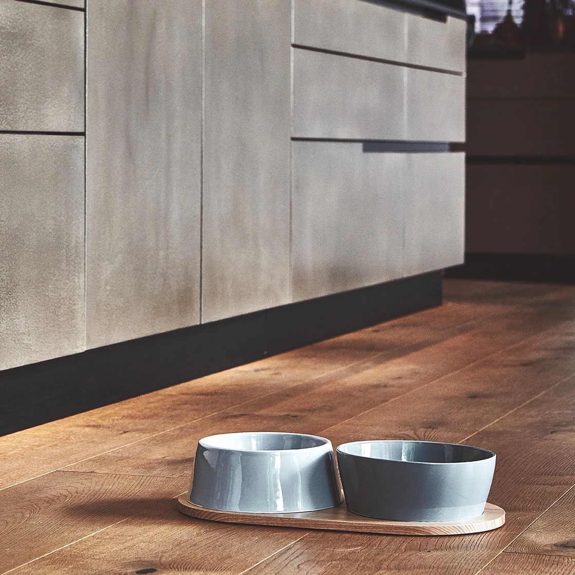 Dass Hundenäpfe sich mit einer geschmackvollen Einrichtung in Einklang bringen lassen, beweist das Doppio Napf-Set. Doppio ist aus hochwertigem Porzellan gefertigt und wird in drei sanften Farbtönen zum Hingucker in jeder Küche.