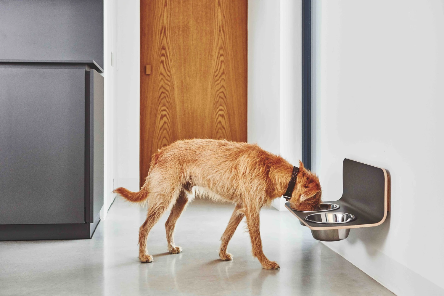 Mit wenigen Handgriffen lässt sich der Napfhalter auf der gewünschten Höhe an der Wand montieren und so individuell an die Fresshöhe Deines Vierbeiners anpassen. Die scheinbar schwebende Konstruktion ermöglicht Deinem Hund in bequemer und schonender Haltung zu fressen. Dank eines Schiebesystems kann Arco jederzeit wieder abgenommen und gereinigt werden. Weil beim Fressen gerne etwas daneben geht, schützt die gebogene L-Form ihre Wand vor Spritzern und Verschmutzung und ermöglicht gleichzeitig ein bequemes Wischen unter dem Napf.
