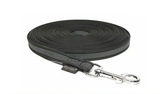 Die gummierte Schleppleine von Mystique ist ein wichtiges Hilfsmittel in der Hundeerziehung, ideal für den Hundesport, Hobby und Freizeit. Durch die hochwertige, beidseitig gummierte Beschichtung liegt die Leine auch bei Nässe gut in der Hand und rutscht nicht schmerzhaft durch die Hände wenn dein Hund unvermittelt zieht. Die Leine ist mit und ohne Handschlaufe erhältlich. Die Breite des gummierten Nylon-Gurtbands beträgt bei dieser Schleppleine 12mm, die Länge 20m.