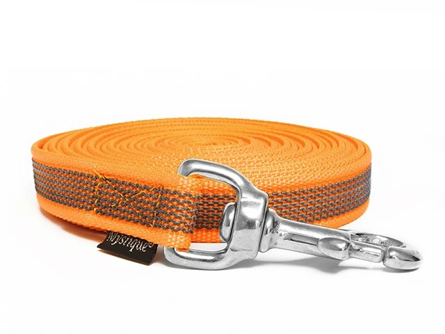 Die gummierte Schleppleine von Mystique ist ein wichtiges Hilfsmittel in der Hundeerziehung, ideal für den Hundesport, Hobby und Freizeit. Durch die hochwertige, beidseitig gummierte Beschichtung liegt die Leine auch bei Nässe gut in der Hand und rutscht nicht schmerzhaft durch die Hände wenn dein Hund unvermittelt zieht. Die Leine hat keine Handschlaufe. Die Breite des gummierten Nylon-Gurtbands beträgt bei dieser Schleppleine 20mm, die Länge 20m. Durch die auffällige Farbe wird die Leine gut gesehen und Unfälle mit zum Beispiel Radfahrern oder Spaziergängern können vermieden werden.