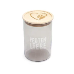 Unsere Vorratsgläser sind mit einem Deckel aus Buchenholz ausgestattet und eignen sich hervorragend zur Lagerung unserer Leckerlis, sowie unserer Zusätze. Durch ihr schönes Design sind sie zudem ein Blickfänger in jeder Küche und man sieht sofort wenn es Zeit ist Nachschub zu bestellen!!