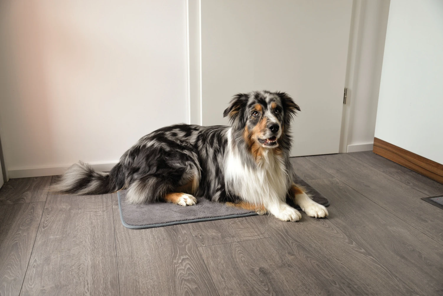 Die Unterseite von der Petlando Dry Mat ist genoppt (anti-rutsch) und kann so nicht verrutschen.