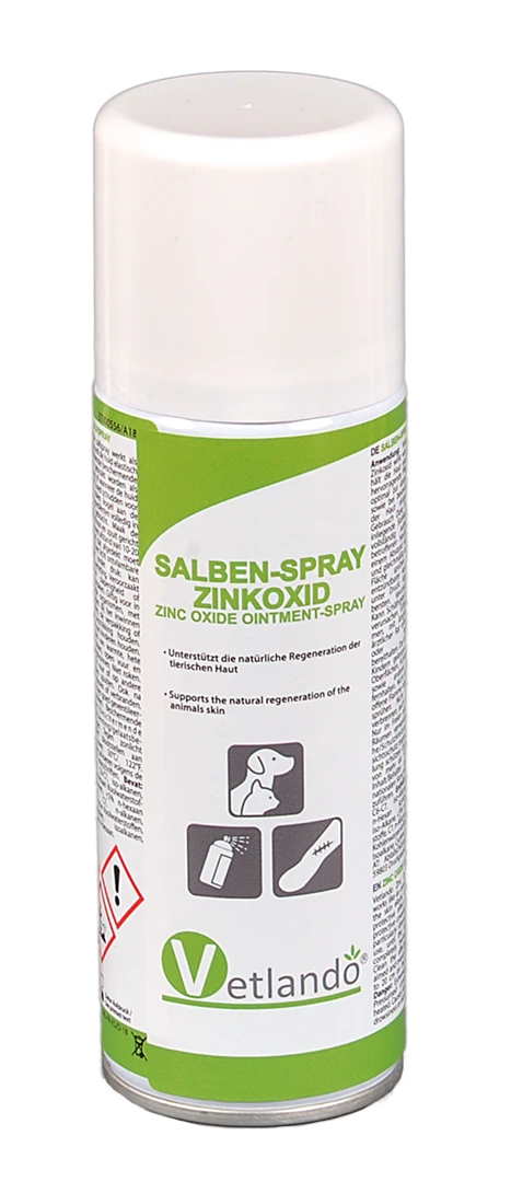Vetlando Salben-Spray Zinkoxid wirkt wie ein Salbenverband, hält die Haut elastisch und hat eine hervorragende Pflegewirkung. Es kann optimal zur abdeckenden Hautpflege sowie bei besonderer Beanspruchung der Haut eingesetzt werden. Vor Gebrauch Dose kräftig schütteln, bis inliegende Stahlkugel die Substanzen vollständig aufgewirbelt hat. Die betroffenen Hautpartien reinigen mit einem Abstand von 10-20 cm gezielt und gleichmäßig auf die abzudeckende Fläche sprühen.
