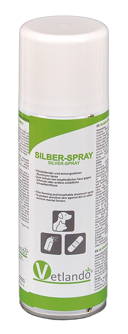 Vetlando Silber-Spray bildet einen lückenlosen und feuchtigkeitsabweisenden Metafilm, der elastisch und luftdurchlässig bleibt. Vor Gebrauch Dose kräftig schütteln, bis inliegende Stahlkugel die Substanzen vollständig aufgewirbelt hat. Aus einer Entfernung von ca. 10-20 cm auf die saubere und trockene Fläche aufsprühen, bis ein feiner metallischer Schutzfilm erkennbar ist.