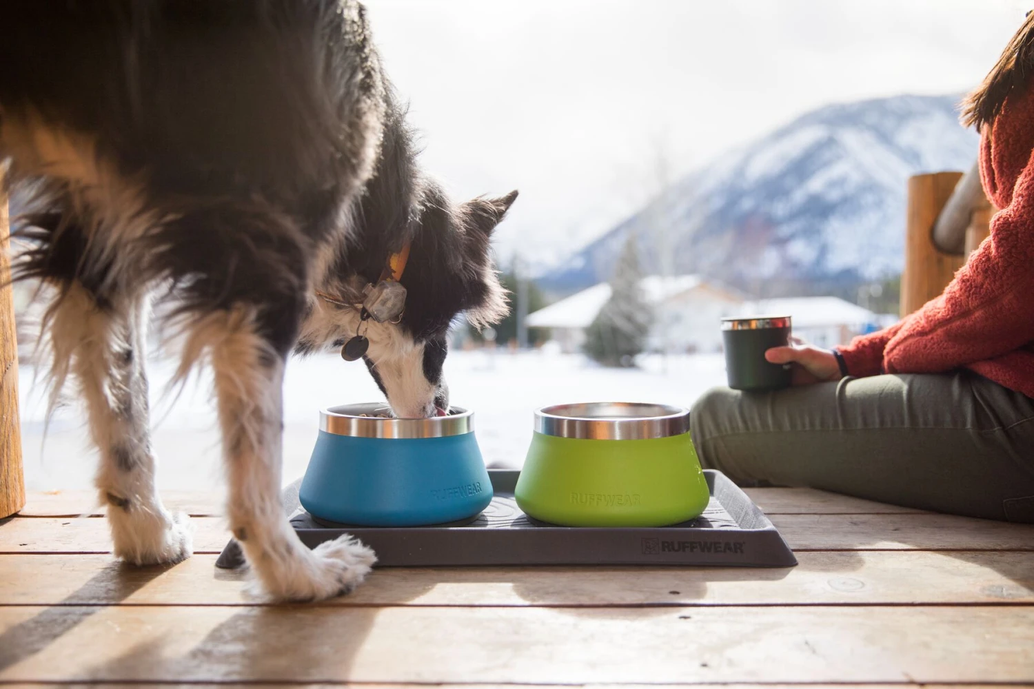 Abenteuer beginnen im Basecamp. Die Ruffwear Basecamp Napfunterlage bietet Deinem vierbeinigen Begleiter einen Ort, um sich zu erfrischen und neue Kräfte zu sammeln, bevor es auf ins nächste Abenteuer in die Berge, an den Fluss oder auf die Wanderpfade geht. Die Napfunterlage aus recycelten Materialien für Futter- und Wassernapf hat einen TPE-beschichteten Antirutschboden und stabile Außenkanten, die ein Verschütten oder Umtreten durch übermütige Hunde verhindern. Um Euch auf das nächste Outdoor-Abenteuer einzustimmen, hat die Basecamp Napfunterlage auf der Oberfläche ein Topo-Kartendesign.