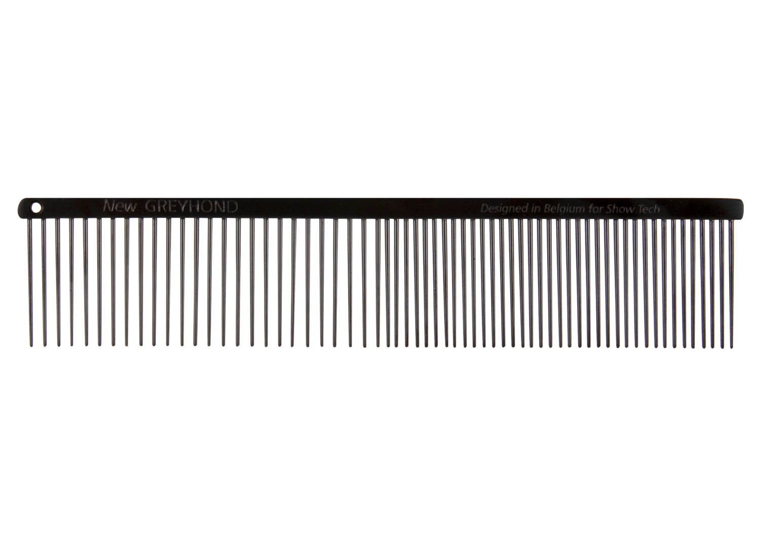 Professioneller Kamm von Show Tech, der auf dem originalen, klassischen Design des Greyhond Kammes basiert. Die spezielle Teflonbeschichtung schützt vor statischer Aufladung und lässt den Kamm ganz besonders gut durch das Fell des Hundes gleiten.