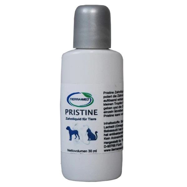 Pristine ist ein sanftes Pflegemittel, das bereits nach den ersten Anwendungen deutlich sichtbarere Veränderungen an den Zahnverfärbungen zeigen und Zahnbelag entfernen kann. Um größtmöglichen Erfolg zu erlangen empfehlen wir die regelmäßige, zum Beginn tägliche Anwendung von Pristine. Bei starken Zahnsteinbelägen kann eine Grundbehandlung durch den Tierarzt im Vorlauf für sofortigen Erfolg bei chronischen Zahnfleischentzündungen ratsam sein, um dann im Alltag diesen Erfolg mit unserem Zahnpflegemittel zu erhalten.