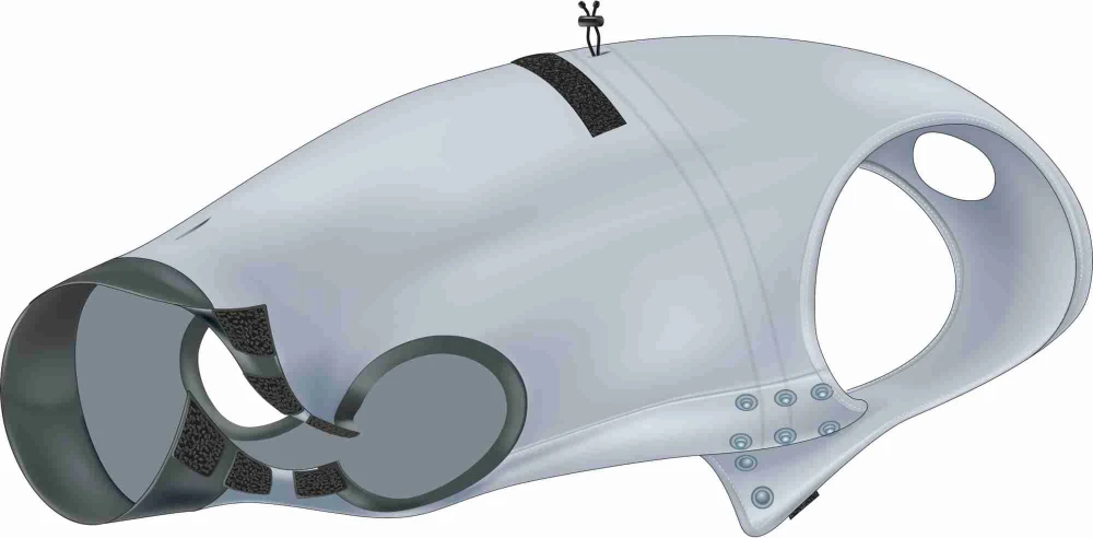 • individuell anpassbar durch Klettfixierung und Tunnelzug
