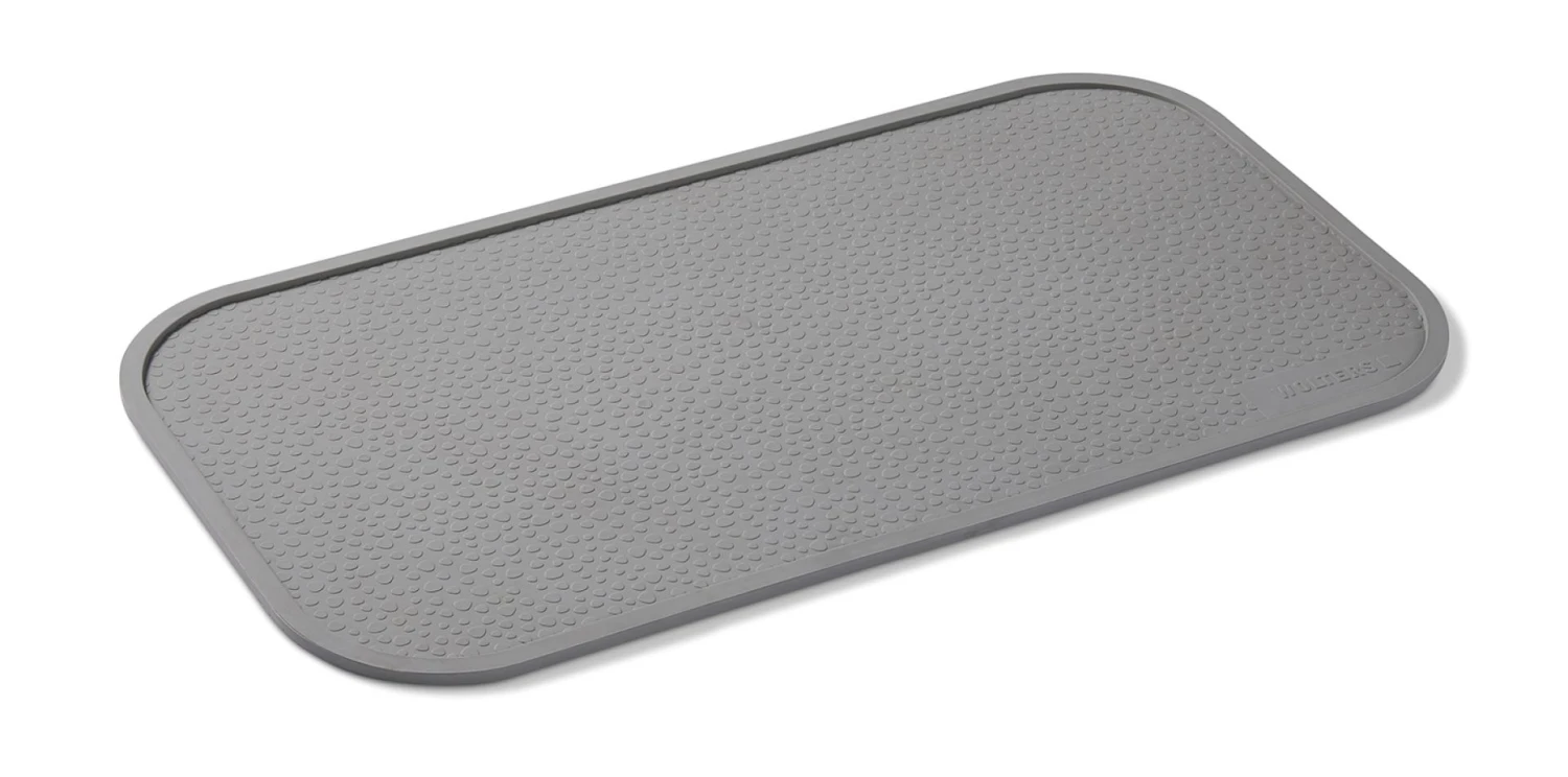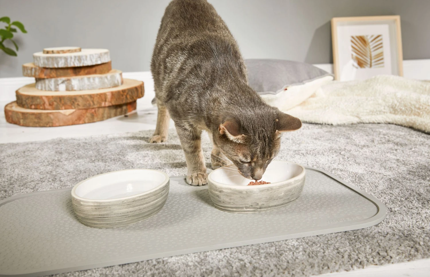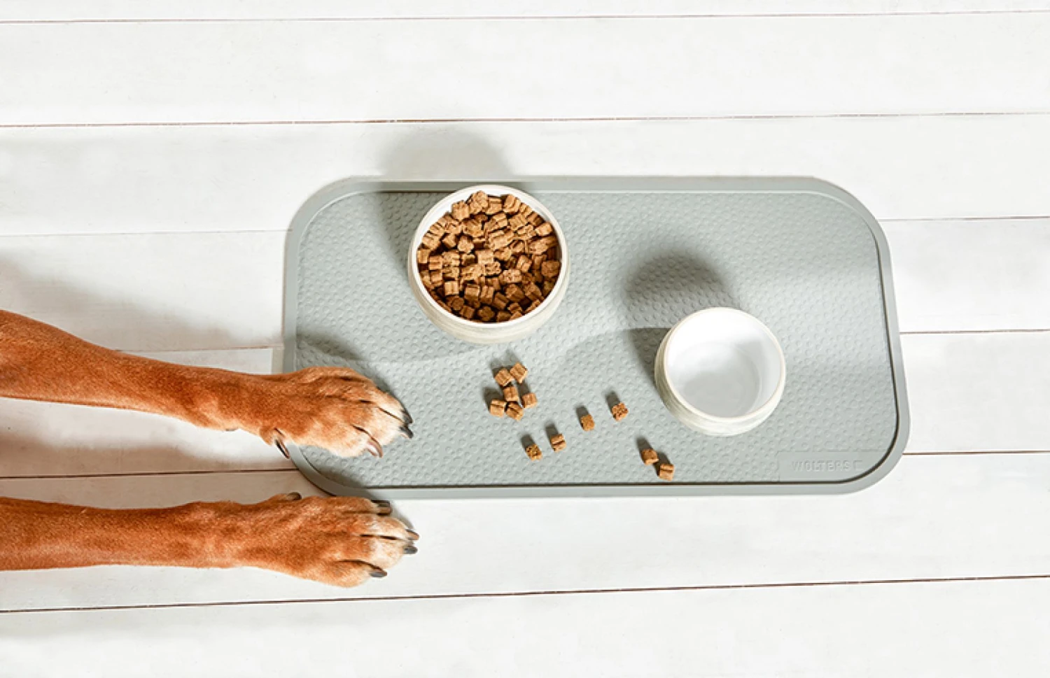 Sie besteht aus Naturkautschuk und wurde ausschließlich mit natürlichen Stoffen gefärbt. Gesundheitlich absolut unbedenklich für dein Haustier! Die noppenartige Struktur verhindern, dass die Näpfe wegrutschen. Sollte bei der Futteraufnahme versehentlich etwas danebengehen, schützt eine praktische Überlaufkante am Rand den Fußboden. Darüber hinaus kann die Unterlage zusammengerollt werden und ist somit ein perfekter Begleiter auf Reisen.