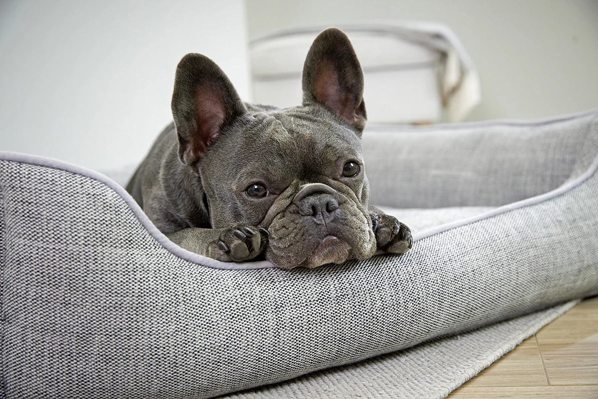 - An den hohen Seitenrändern der Lounge kann sich der Hund gemütlich anlehnen